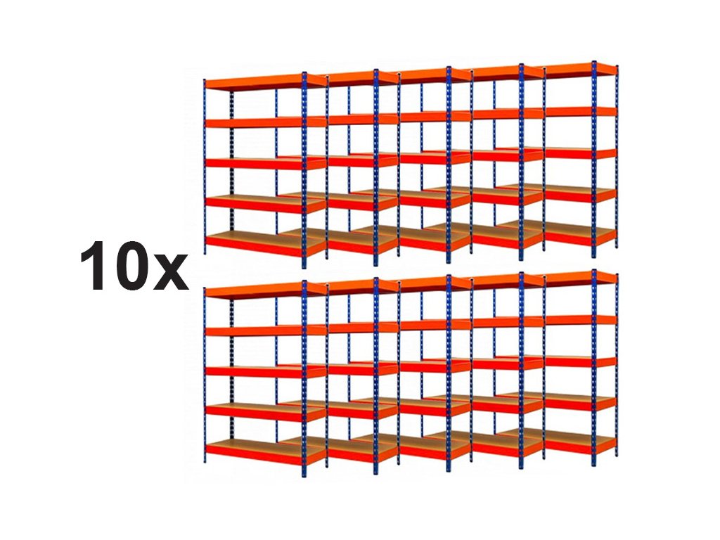 AKCIÓS CSOMAG, 10 DARAB PROFI SALGÓ POLC 2500x1800x700 mm lakkozott 5-polc, teherbírás 2000 kg - KÉK-NARANCS
