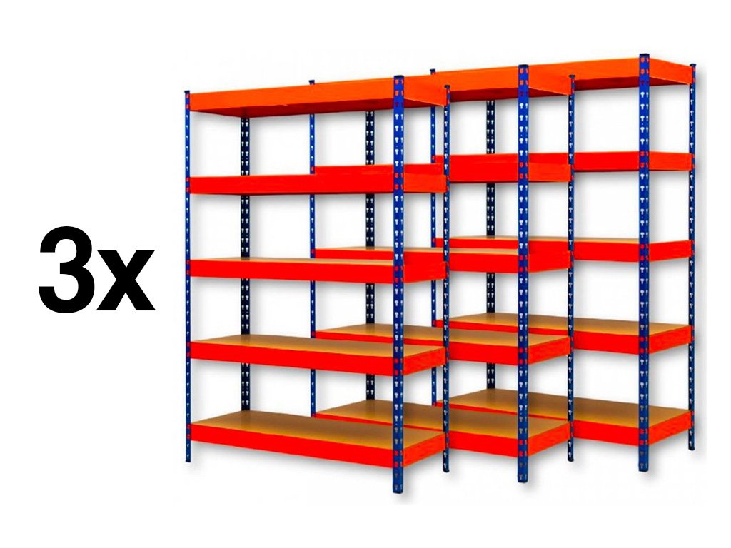 AKCIÓS CSOMAG, 3 DARAB PROFI SALGÓ POLC 2500x1800x700 mm lakkozott 5-polc, teherbírás 2000 kg - KÉK-NARANCS