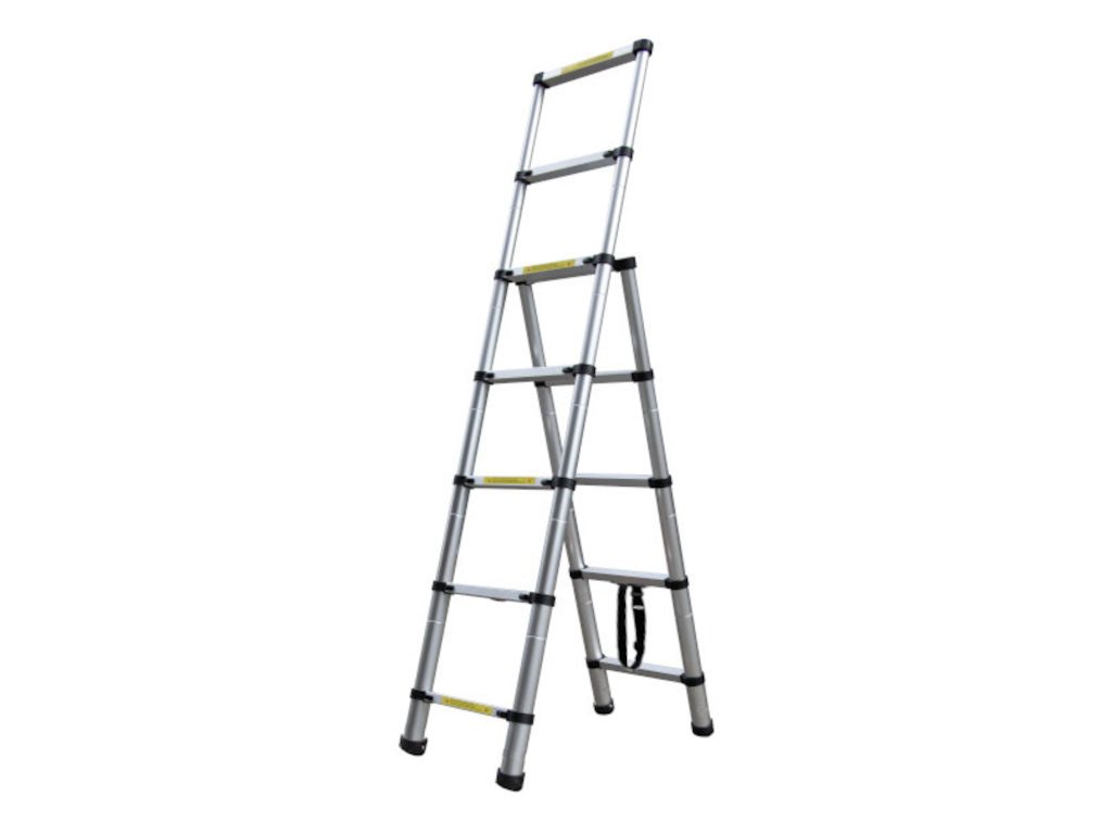 Az 5 és 7 fokos teleszkópos lépcsők univerzális megoldást jelentenek a ház, a nyaraló, a raktár vagy az üzlet számára. A különböző átmérőjű alumíniumcsövekből álló modern konstrukció lehetővé teszi, hogy a létra hihetetlenül kicsire összehajtható legyen (csomagméret 68x48x14 cm). Néhány pillanat alatt olyan létrává alakítható, amelynek hosszabbik oldala akár 2 m-re is felér. Mindenekelőtt rugalmasságával és sokoldalúságával tűnik ki. A hosszabbik oldal utolsó két lépcsőfoka támasztékot biztosít, amelybe belekapaszkodhat munka közben.