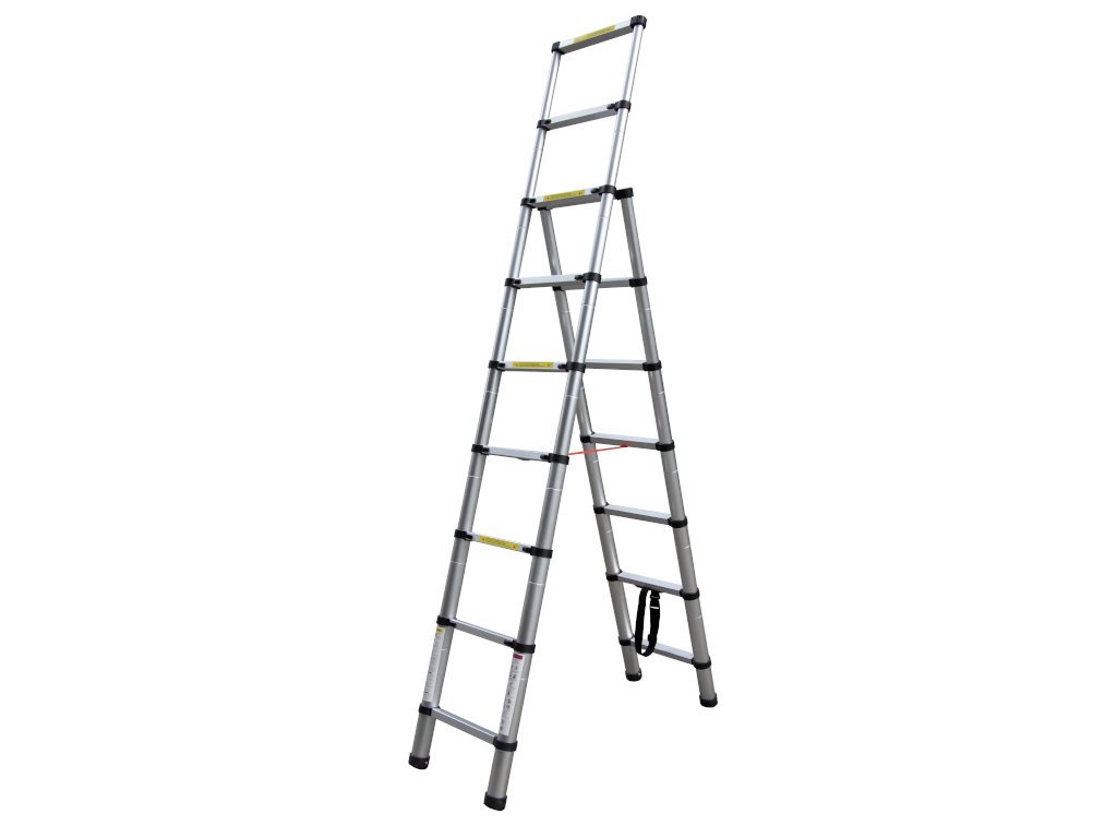 Az 7 és 9 fokos teleszkópos lépcsők univerzális megoldást jelentenek a ház, a nyaraló, a raktár vagy az üzlet számára. A különböző átmérőjű alumíniumcsövekből álló modern konstrukció lehetővé teszi, hogy a létra hihetetlenül kicsire összehajtható legyen (csomagméret 73x48x15 cm). Néhány pillanat alatt olyan létrává alakítható, amelynek hosszabbik oldala akár 2,6 m-re is felér. Mindenekelőtt rugalmasságával és sokoldalúságával tűnik ki. A hosszabbik oldal utolsó két lépcsőfoka támasztékot biztosít, amelybe belekapaszkodhat munka közben.