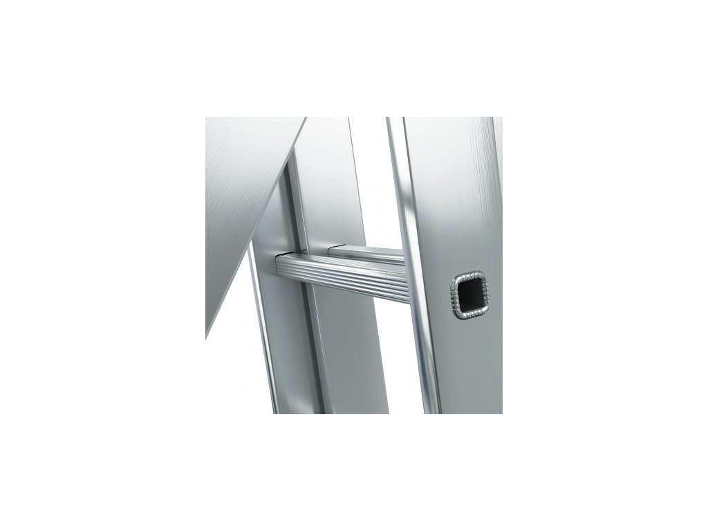 Professzionális, minőségi kivitelezésű, többfunkciós alumínium létra. Az alumínium szerkezetnek köszönhetően könnyű, a bordázott csúszásmentes létrafokok pedig növelik a munkavégzés biztonságát. 7 különböző pozícióba állítható, tolólétraként, klasszikus létraként, vagy A alakú állványzatként is használható. Széles terpeszének köszönhetően egyenetlen talajon is stabilan megáll. Kiválóan alkalmazható háztartásban, nyaralóban, vagy munkaeszközként is.