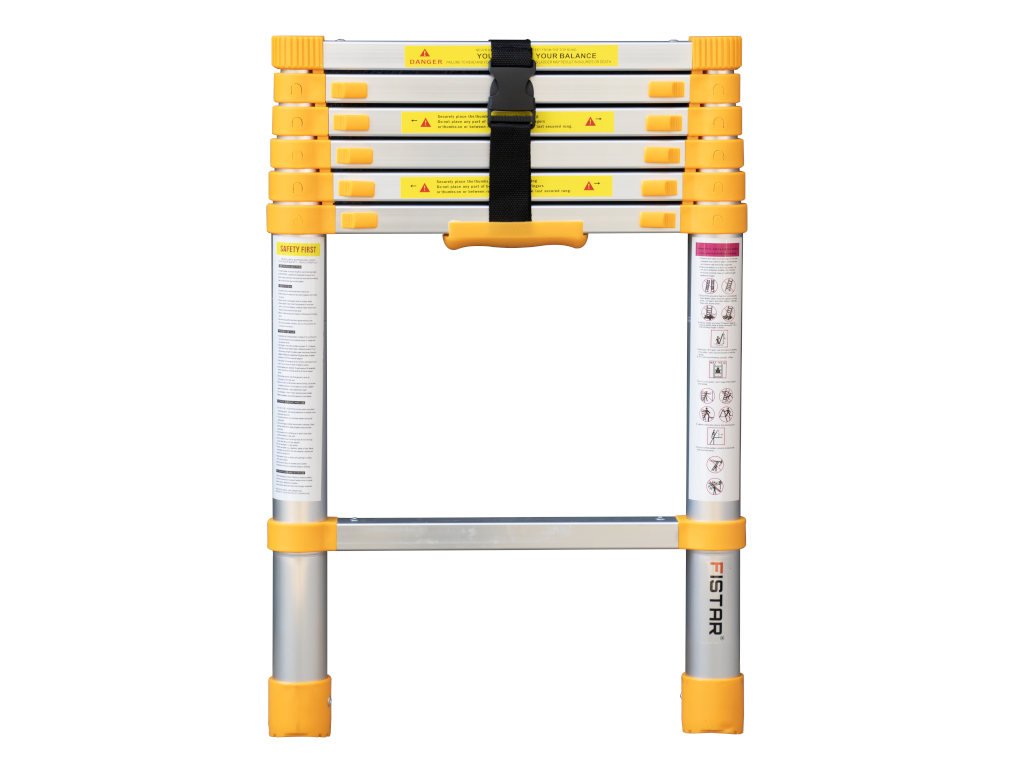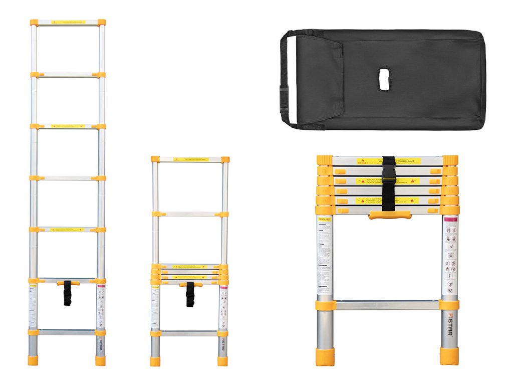 Az összecsukott teleszkópos létra egy szállítótáskában tárolható. Ez megkönnyíti a szállítást, tárolást és a pormentességet. Összehajtva könnyű, és könnyen elfér az autóban. Ugyanakkor nagyon tartós és biztonságos. Akár 150 kg-os terhelést is kibír.