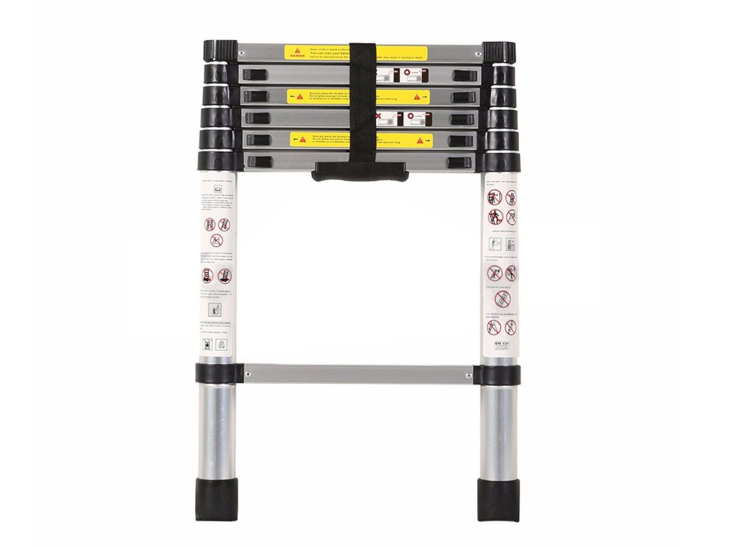 A 7 lépcsőfokos professzionális teleszkópos létra minden elvárásának megfelel. A különböző átmérőjű alumíniumcsövekből álló modern konstrukció lehetővé teszi, hogy a létra hihetetlenül kis méretre (68x7x46 cm-es csomag) összecsukható legyen. Néhány pillanat alatt akár 2 m magas létrává is kibonthatja.