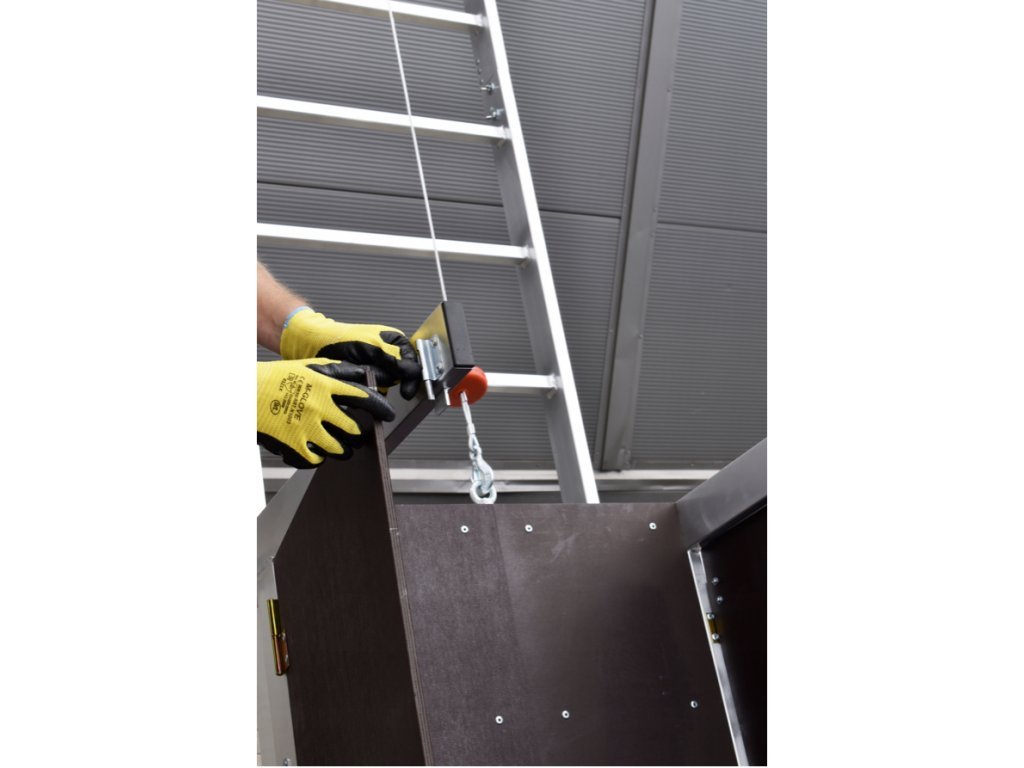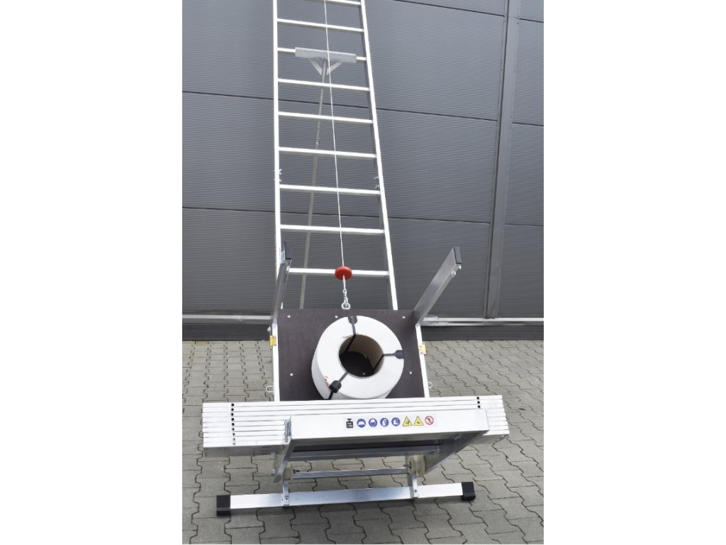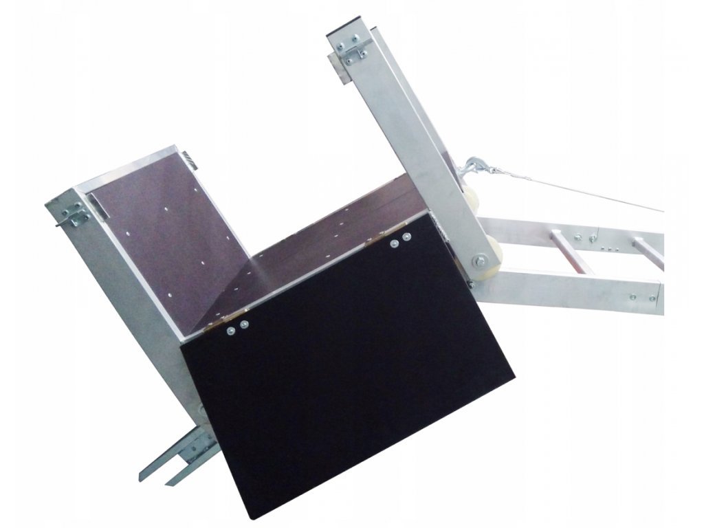 A létrás tetőemelő kocsija alumínium vázból és vízálló rétegelt lemezből készül, amely csúszásmentes is. A kocsit elsősorban tetőfedők, szerszámok vagy építőanyagok emelésére tervezték. A kocsi oldalai kinyithatóak és eltávolíthatóak, így hosszabb tárgyak is elhelyezhetők a kocsiban, amelyeket felhúzhat a tetőre, és a kész fogantyúk segítségével a tárgyakat behúzható hevederrel rögzítheti. A kocsi maximális terhelhetősége 125 kg. A kocsi görgőkkel van felszerelve, amelyek biztosítják a sima haladást, és rögzítik a kocsit a létra szerkezetéből való kilengéstől is.